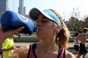 * Be sure to stay hydrated during the race. Make note of aid stations and prepare to utilize them. You will need to drink more to compensate for the rapid depletion of your body's fluids in the heat.